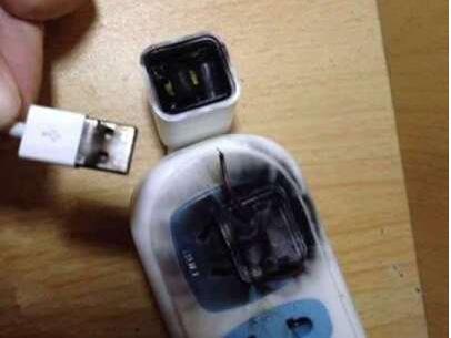 2016年7月,湖南一小區(qū)居民家中,客廳插座上兩個(gè)多月未拔的充電器發(fā)生故障導(dǎo)致火災(zāi),屋主和女兒均被燒傷。