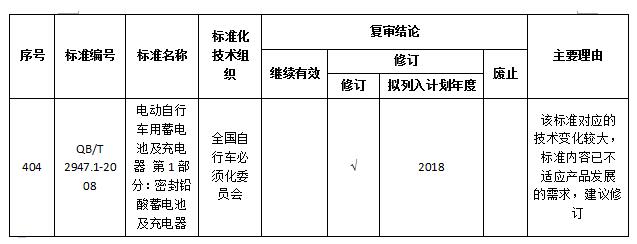 近日,國(guó)家工信部發(fā)布公示,公開征集740項(xiàng)推薦性行業(yè)標(biāo)準(zhǔn)集中復(fù)審結(jié)論的意見。其中,QB/T 2947.1-2008《電動(dòng)自行車用蓄電池及充電器 第1部分:密封鉛酸蓄電池及充電器》被列入修訂計(jì)劃。