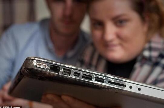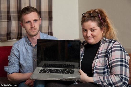 據(jù)英國《每日郵報》3月21日報道,英國一名女子外出上班時將蘋果筆記本留在家中充電,結(jié)果充電器故障引發(fā)大火,燒毀整座屋子。蘋果公司承認(rèn)這一事實,卻來回踢皮球,不予賠償。圖為遭遇不幸的Impey(右)和她的未婚夫Martyn Taylor,他倆手捧那臺出事的MacBook Pro電腦。