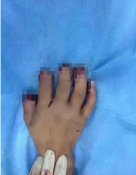 據(jù)悉,被送到哈爾濱市骨傷科醫(yī)院時,小卓的短褲上全是血,右手除小手指是完整的,其余4個手指都炸斷了,電子元件的碎片還插在手掌上,孩子的臉上、胸部、肚子和腿部也有被崩壞的傷口。醫(yī)院立即為孩子進行了手術(shù),術(shù)后病情穩(wěn)定。