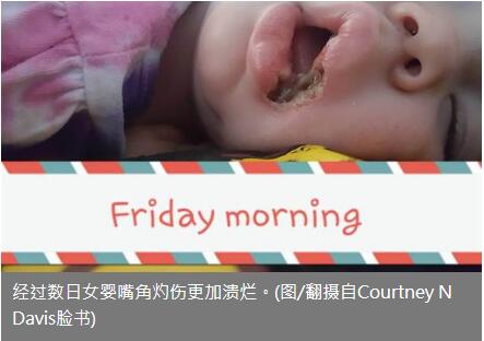 女嬰母親戴維斯(Courtney N Davis)在個(gè)人臉書上PO出自己女兒的傷勢(shì),并在文中表示女兒僅是把充電器放入口中數(shù)秒,拿出來(lái)后就發(fā)現(xiàn)左邊嘴角被灼傷至白色,之后幾天傷口持續(xù)惡化,嘴角整個(gè)潰爛,因此趕緊帶到醫(yī)院給醫(yī)生診治,醫(yī)生證實(shí)女嬰的嘴角是受到電灼傷,而這是充電器所造成的,戴維斯把他女兒受傷后的照片分享給大家看,希望藉此可以提醒家長(zhǎng)們多加注意,而這篇貼文也已經(jīng)被轉(zhuǎn)發(fā)了30多萬(wàn)次,戴維斯表示慶幸,女兒并沒(méi)有感覺(jué)到灼傷,她表現(xiàn)出像是沒(méi)有任何問(wèn)題的樣子,之后女嬰也將接受整形手術(shù)回復(fù)原來(lái)的可愛(ài)樣貌。