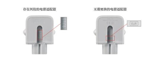 無論產(chǎn)品是否在保修期內(nèi),用戶都可以帶著存在風(fēng)險的電源適配器去Apple Store零售店或授權(quán)經(jīng)銷商處免費更換,但需要提供產(chǎn)品序列號進行驗證。