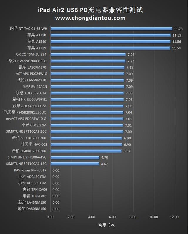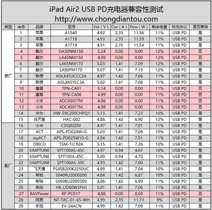 29款USB PD充電器是對(duì)iPad Air2 的充電功率大致可以分為4個(gè)梯隊(duì)。