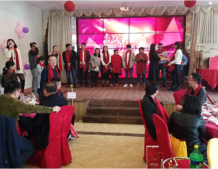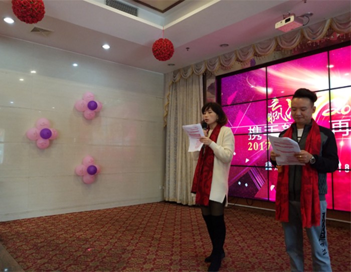 開場(chǎng)舞是有公司五位美女為大家?guī)?lái)的感恩的心手語(yǔ)舞。就像主持人說(shuō)的那樣,懷著感恩的心感恩家人、感恩鑫冠宇達(dá)所有的同事們、感恩與我們合作的每一個(gè)客戶供應(yīng)商、感恩貴人、感恩所有我們值得感恩的人。心懷感恩勝過(guò)千言萬(wàn)語(yǔ),也祝愿鑫冠宇達(dá)集團(tuán),新的一年孕育著新的希望,新的征程將譜寫新的輝煌,今天,我們的航船已經(jīng)起錨,明天,不管經(jīng)歷怎樣的風(fēng)浪,我們到達(dá)理想彼岸的信心不變。讓我們并肩攜手,一起踏上鑫冠宇達(dá)集團(tuán)的新征程!。