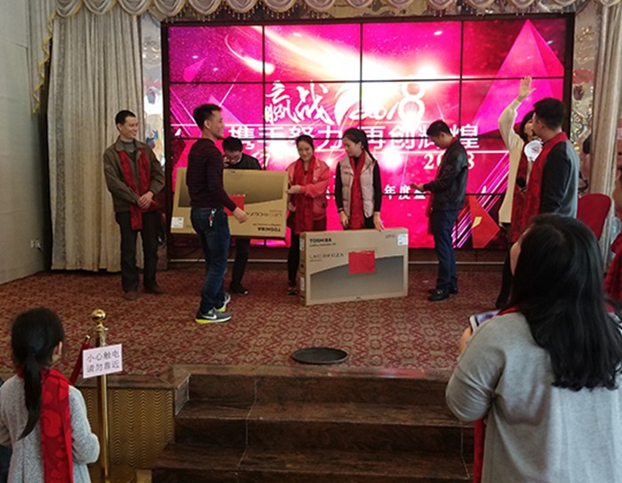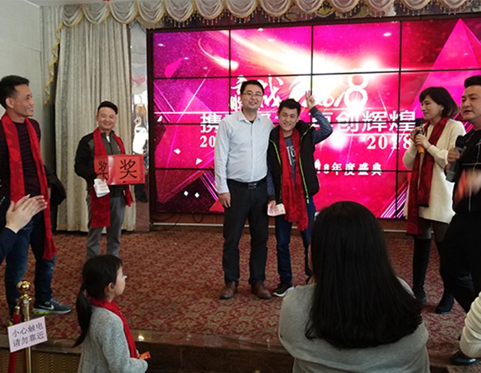 節(jié)目也都表演完了,該到本年會(huì)盛宴最關(guān)鍵的時(shí)刻了,抽獎(jiǎng)。對(duì)于很多同事們來(lái)說(shuō)抽獎(jiǎng)是最關(guān)鍵的時(shí)刻了也是最激動(dòng)人心的時(shí)刻了,萬(wàn)一運(yùn)氣好,被55寸的電視機(jī)砸中呢?主持人介紹完規(guī)則跟獎(jiǎng)項(xiàng)之后,抽獎(jiǎng)?wù)介_始!