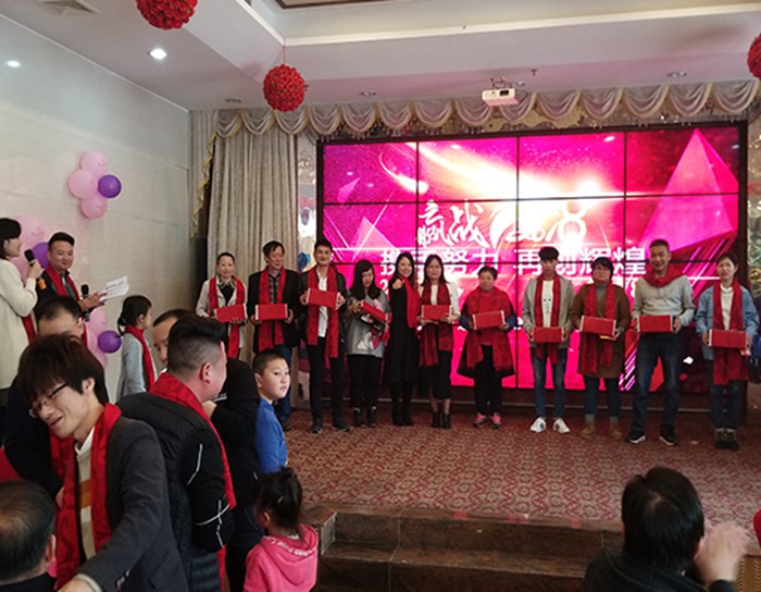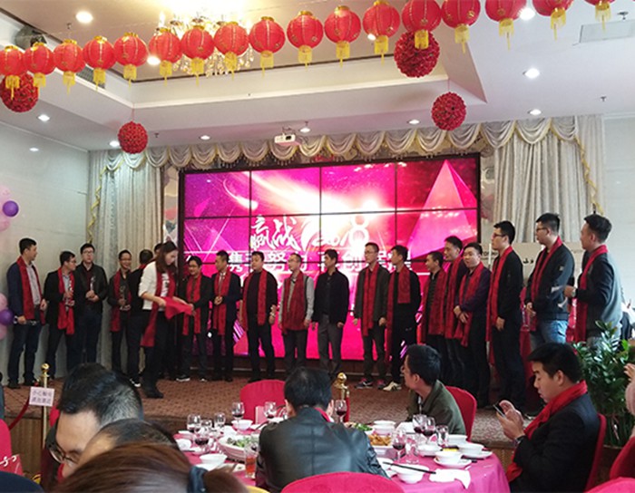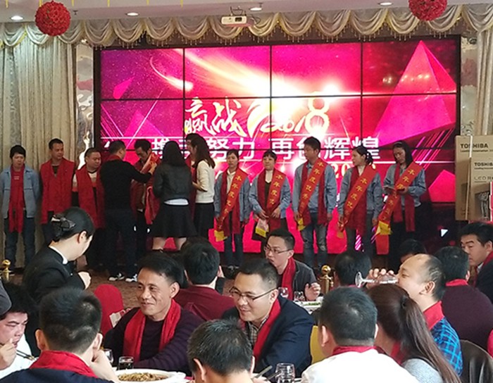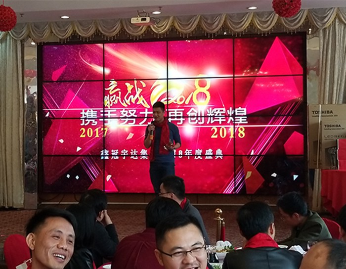紅彩艷艷的大屏幕,顯示著贏戰(zhàn)2018,攜手努力再創(chuàng)輝煌,訴說(shuō)著新的一年,新的開始,新的目標(biāo)攜手努力共同前行。在全場(chǎng)近500人的歡呼和吶喊中,2017年鑫冠宇達(dá)年會(huì)盛宴正式開始。隨著主持人為我們送上新年的祝福,年會(huì)盛宴節(jié)目正式開始。
